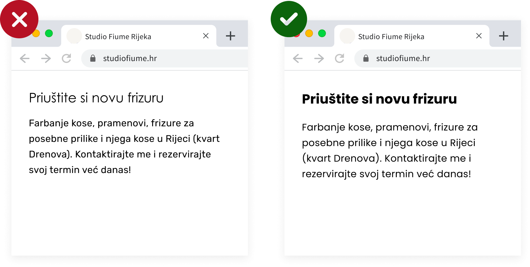 Općenito, izbjegavajte koristiti dva fonta iz iste klasifikacije. Npr., nemojte kombinirati dva sans serif ili serif fonta zajedno jer nećete imati kontrast.